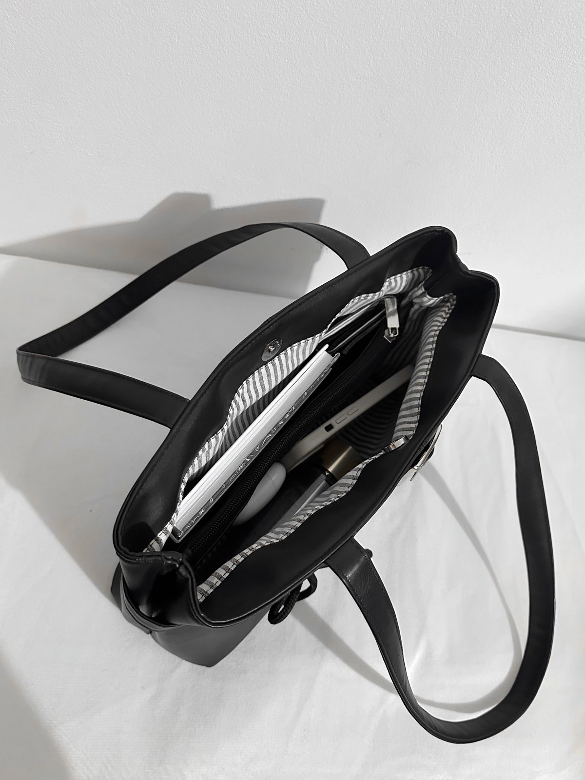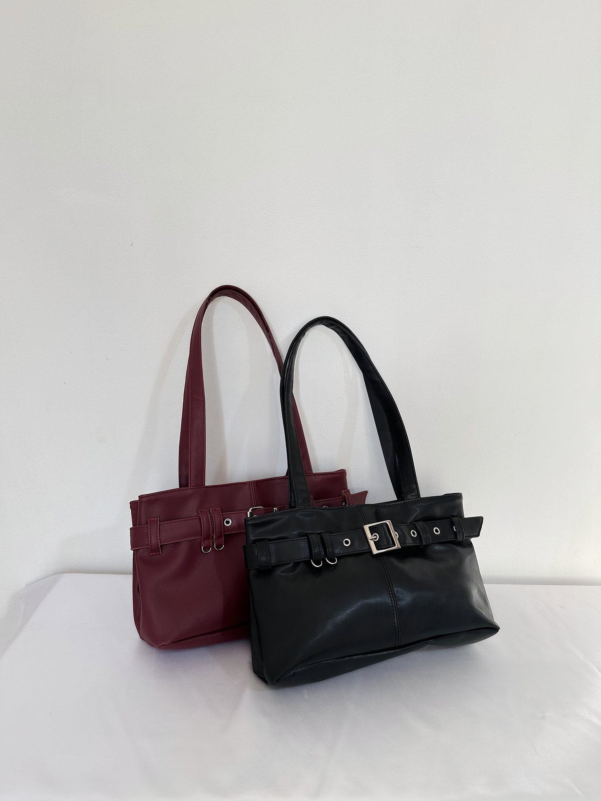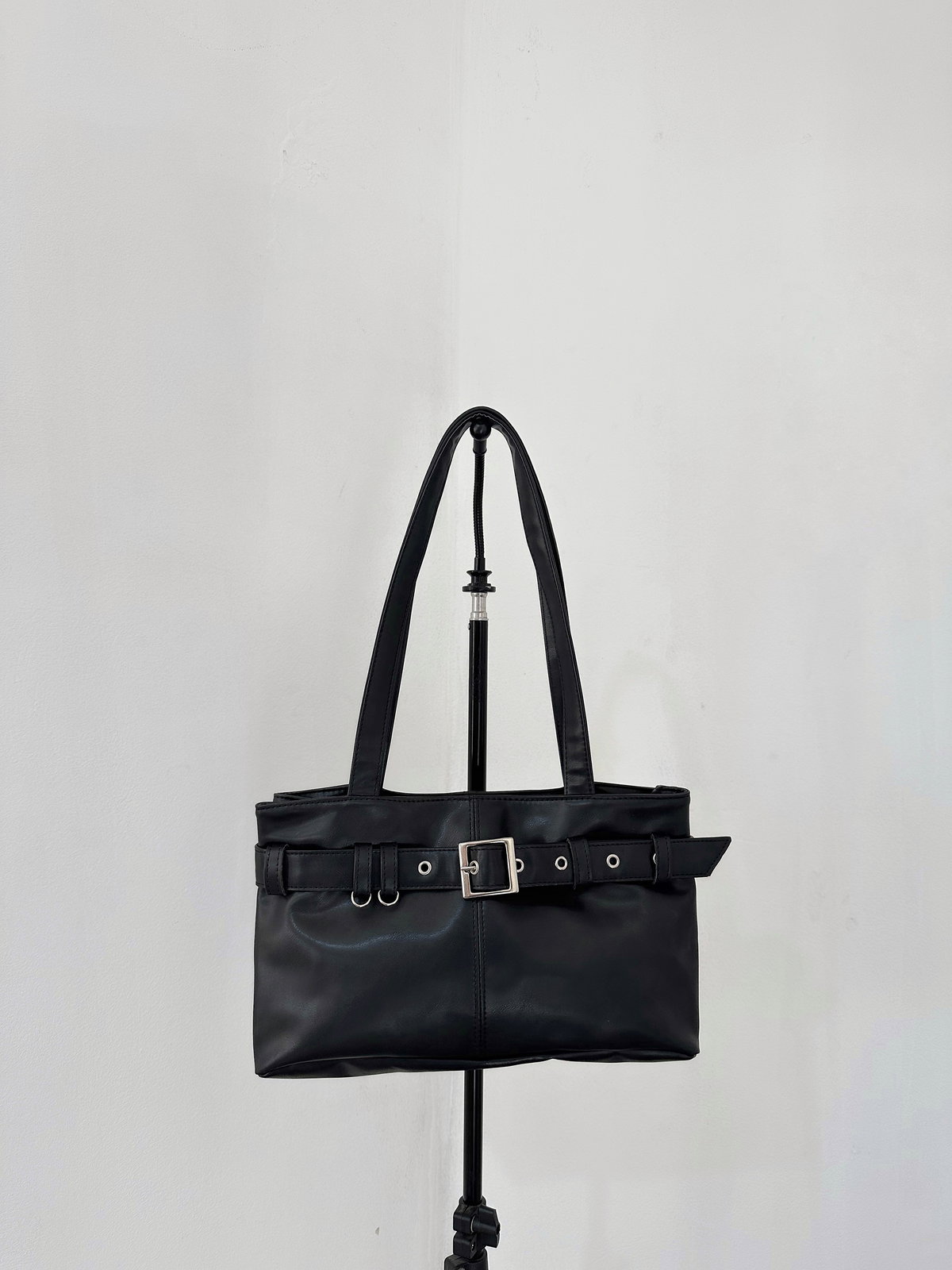 Confeccionada en ecocuero, cuenta con cierre con broche imán, interior forrado y una división interna con cierre, que permite organizar lo básico de forma práctica. Incluye manija para llevar al hombro y se destaca por su detalle de cinturón, que le aporta personalidad y un toque moderno.